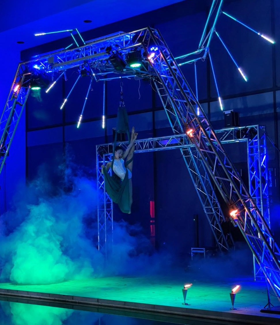 Alle unsere Bühnenshows enthalten einen Aufbau mit Scheinwerfern, Musikanlage und Nebelmaschine.